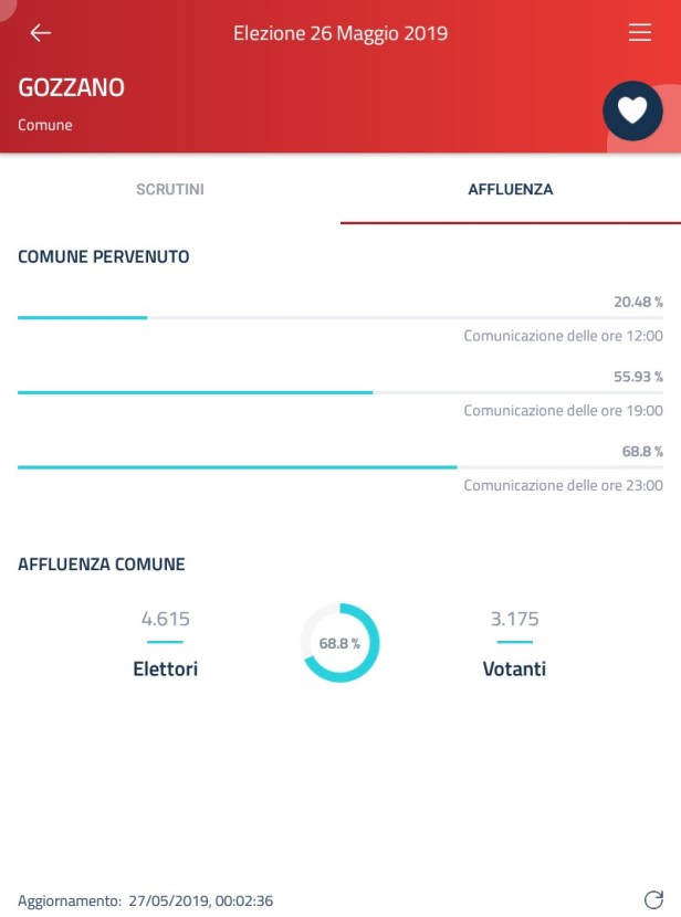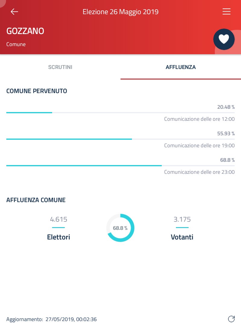 Cusio, Gozzano L’affluenza a Gozzano Date: 27 Maggio 2019Author: Il Provocator Scortese Ecco i dati definitivi sull’affluenza alle urne nel comune di Gozzano per quel che riguarda le elezioni comunali. Condividi: Fai clic per condividere su X (Si apre in una nuova finestra) X Fai clic per condividere su Facebook (Si apre in una nuova finestra) Facebook Fai clic per condividere su WhatsApp (Si apre in una nuova finestra) WhatsApp Fai clic per inviare un link a un amico via e-mail (Si apre in una nuova finestra) E-mail Fai clic qui per stampare (Si apre in una nuova finestra) Stampa Altro Fai clic qui per condividere su Tumblr (Si apre in una nuova finestra) Tumblr Fai clic qui per condividere su LinkedIn (Si apre in una nuova finestra) LinkedIn Fai clic per condividere su Telegram (Si apre in una nuova finestra) Telegram Mi piace Caricamento... Correlati