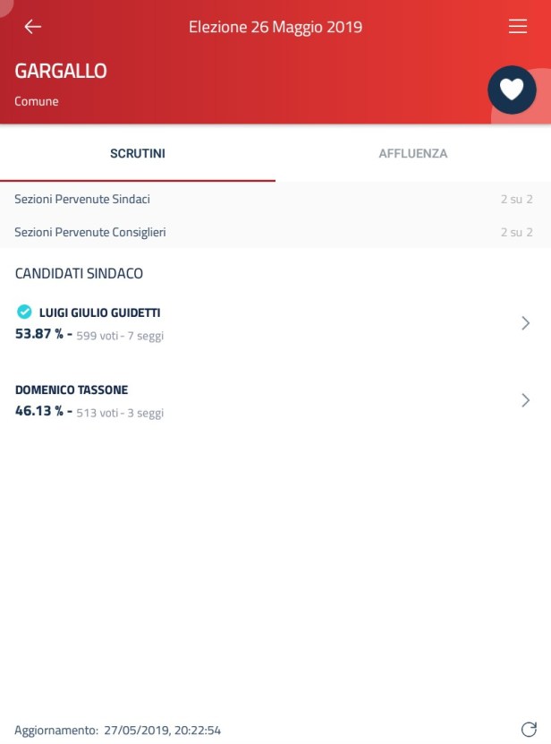 Cusio, Gargallo Luigi Giulio Guidetti sindaco di Gargallo Date: 27 Maggio 2019Author: Il Provocator Scortese È Luigi Guidetti il sindaco di Gargallo per i prossimi cinque anni. Ha sconfitto con un margine di 86 voti Domenico Tassone. Condividi: Condividi su X (Si apre in una nuova finestra) X Condividi su Facebook (Si apre in una nuova finestra) Facebook Condividi su WhatsApp (Si apre in una nuova finestra) WhatsApp Invia un link a un amico via e-mail (Si apre in una nuova finestra) E-mail Stampa (Si apre in una nuova finestra) Stampa Altro Condividi su Tumblr (Si apre in una nuova finestra) Tumblr Condividi su LinkedIn (Si apre in una nuova finestra) LinkedIn Condividi su Telegram (Si apre in una nuova finestra) Telegram Mi piace Caricamento... Correlati